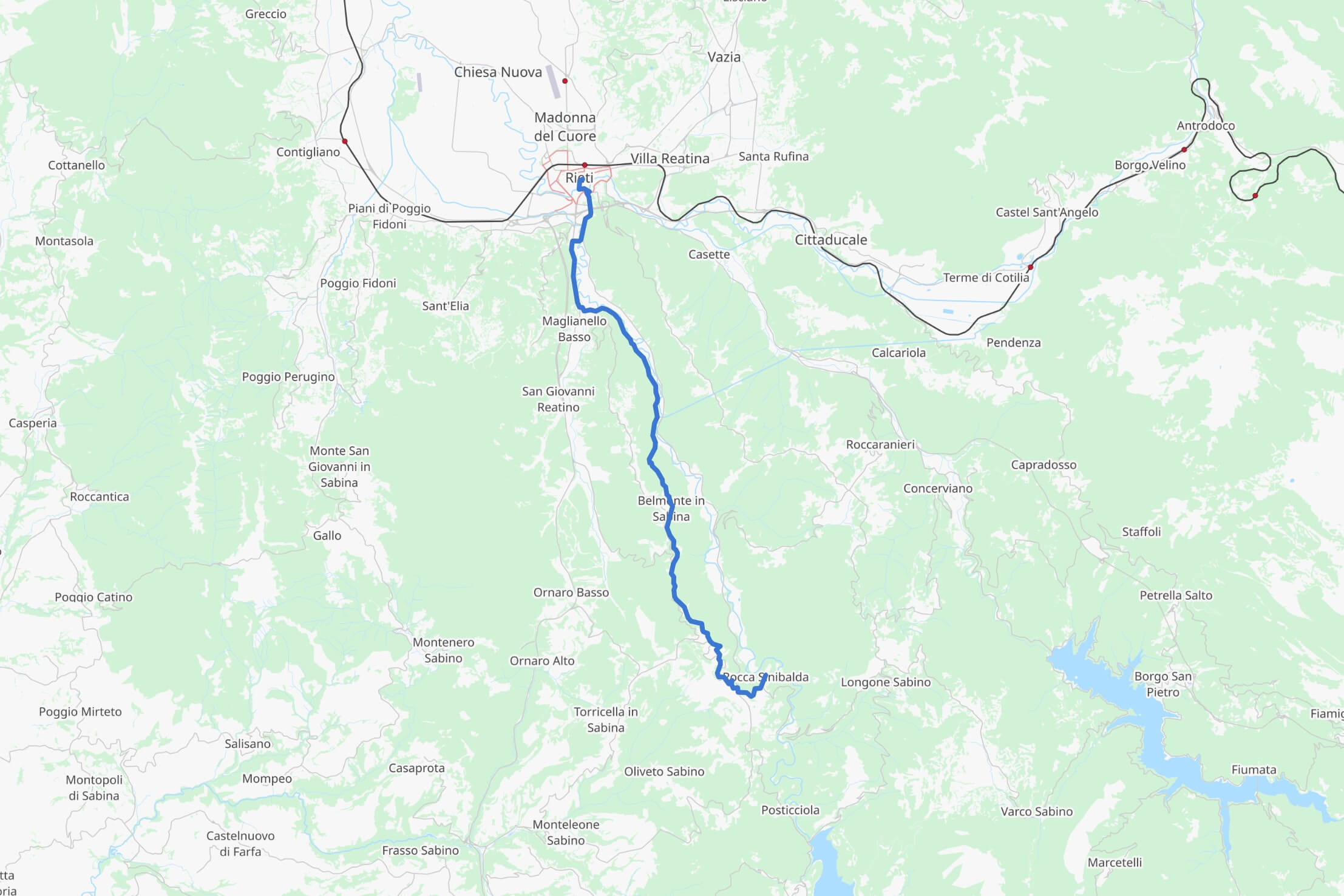 La tappa di 20,4 km parte da Piazza San Rufo, una piazza nel centro di Rieti. Secondo un’antica tradizione risalente al Rinascimento, si crede che il centro d’Italia si trovi in questa piazza, basandosi sui classici della letteratura latina che indicavano il reatino come l’Umbilicus Italiae. Una volta lasciata Rieti, si segue il sentiero lungo il fiume Turano e si affronta una salita impegnativa fino a Belmonte in Sabina, un piccolo e pittoresco borgo con 627 abitanti. Questo borgo si trova su un crinale che affaccia su la Valle del Turano e la Salaria. Dopo Belmonte, si continua lungo un crinale panoramico fino a Rocca Sinibalda.